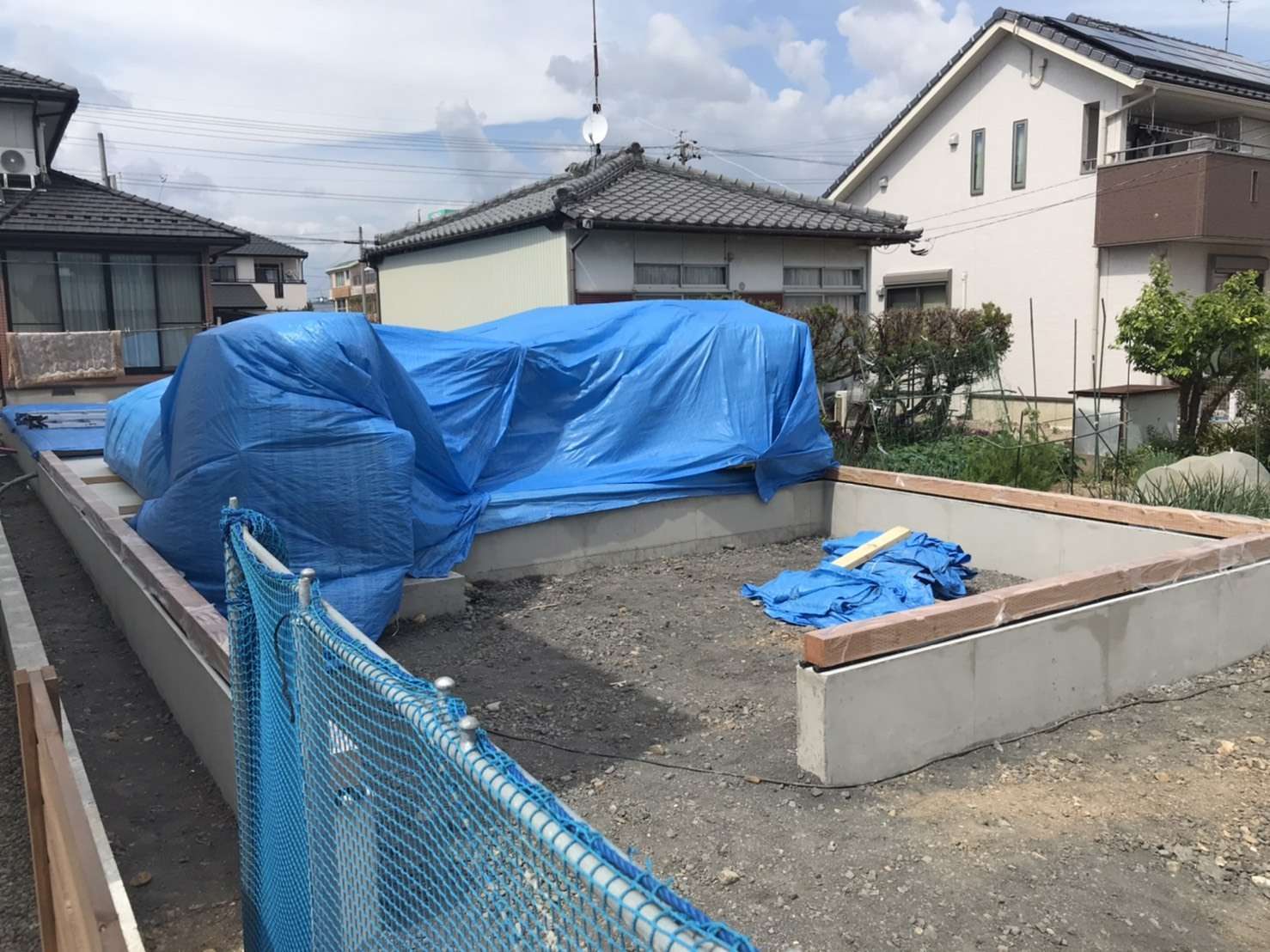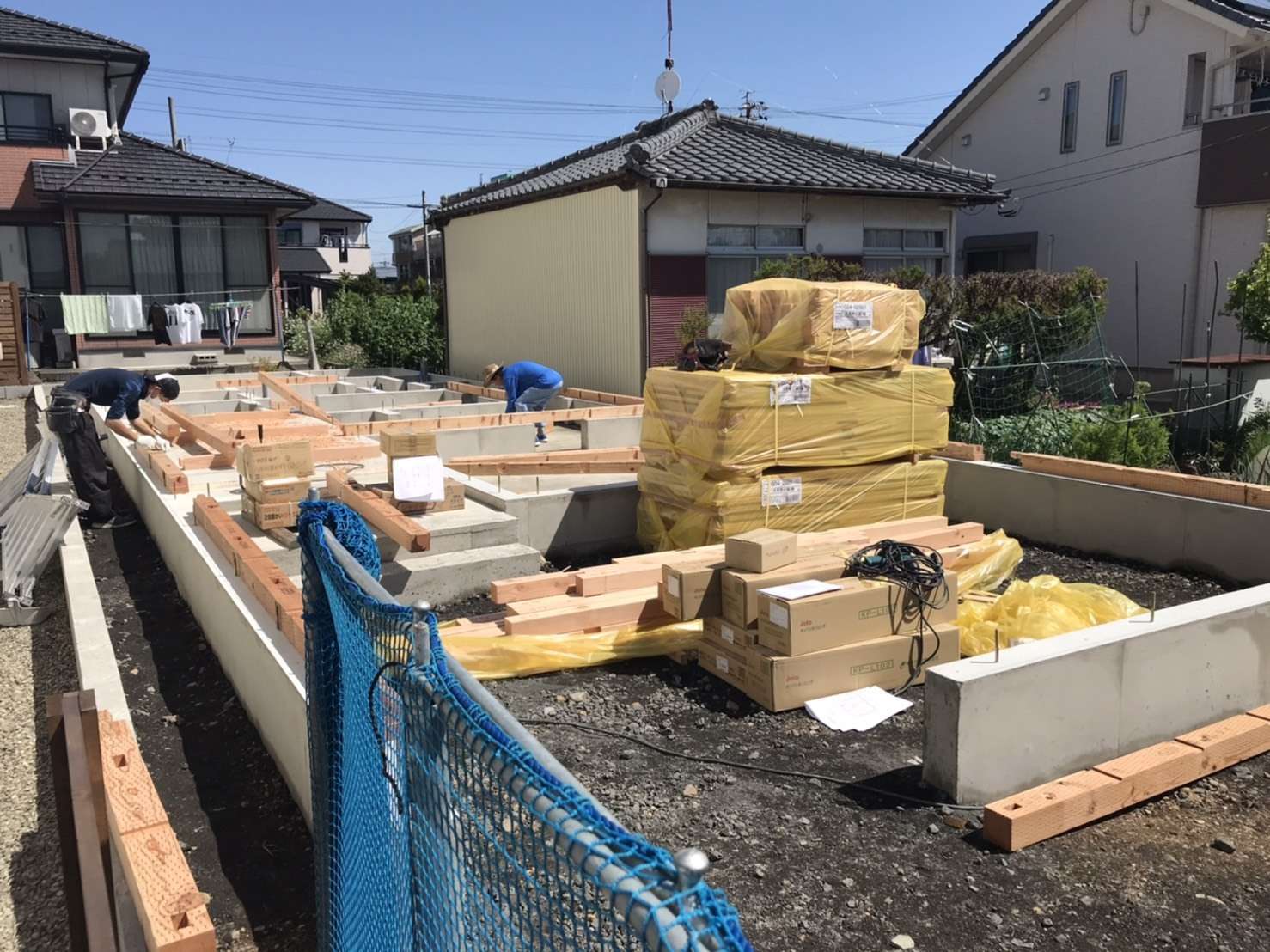 基礎工事も終わり、上棟(おうちの骨組みを作る)のまえに、土台伏せをしています