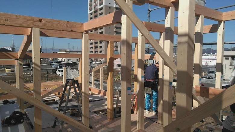 朝から始まりお昼頃にはお家の形が出来上がります☺