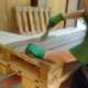 足のいい具合のところでカットして、塗装です 塗って、ふき取って、塗って、ふき取って 完成
