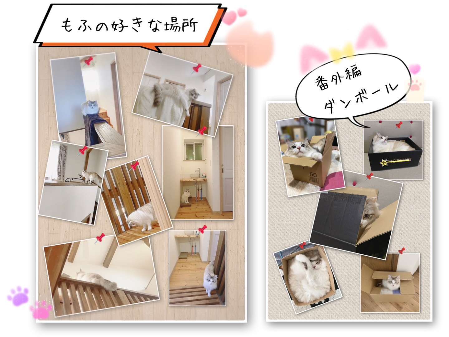 ・2階手洗いの下スペース(爪とぎを置いていますが、水を出すとすぐにあがってきて水で遊ぶ)がすき。