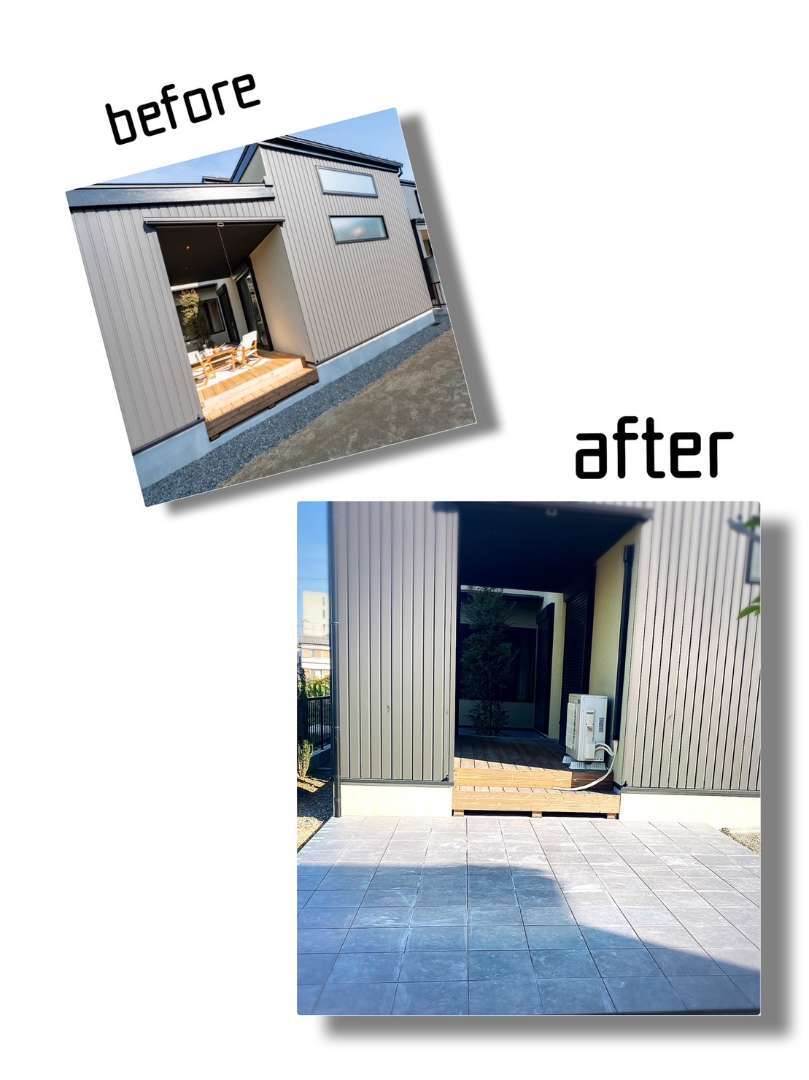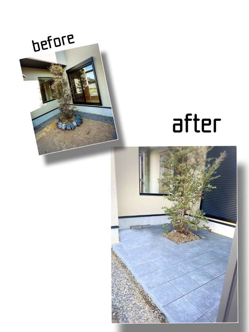 南の庭は、洗濯物🧦をたくさん外で干したい奥様のご要望で、一部タイル張りにしました🥰