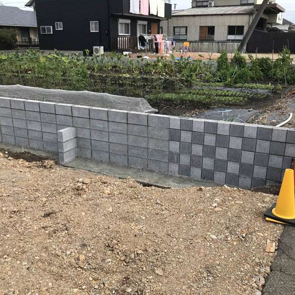 ブロック積んでいます。来週は埋め戻します。