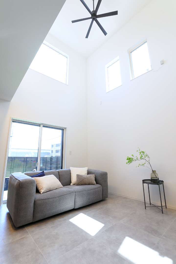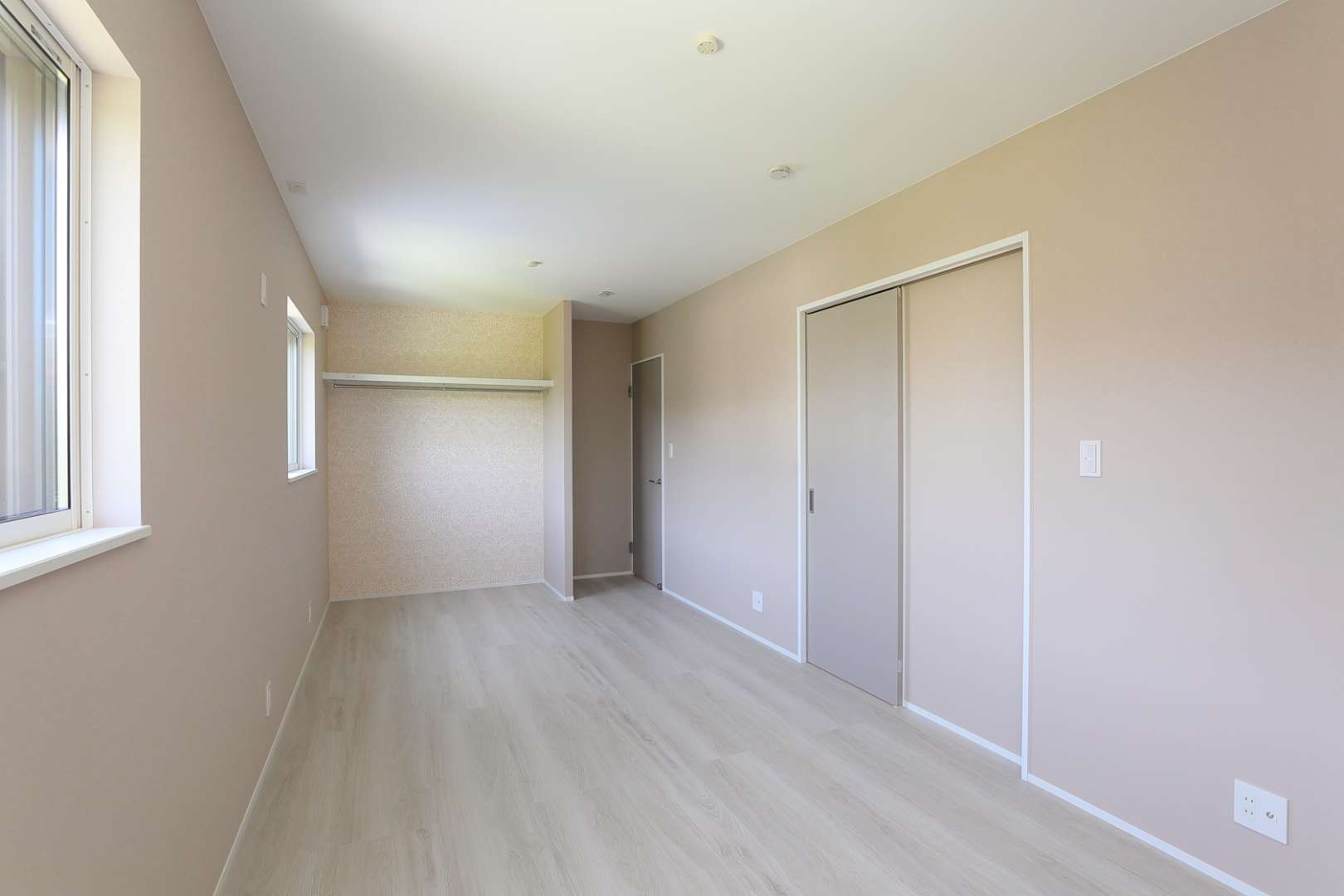 1階はモノトーンインテリア・2階は全体的にグレージュの柔らかい雰囲気。