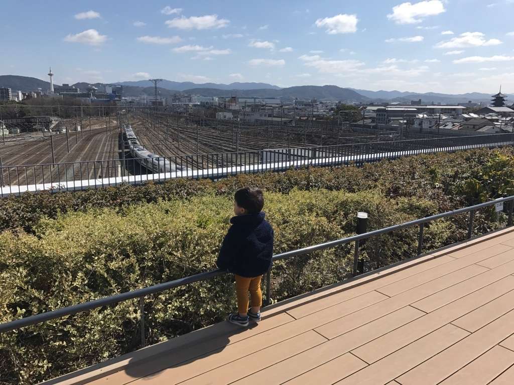 デッキから京都駅へ向かう電車が見えて息子大興奮!!