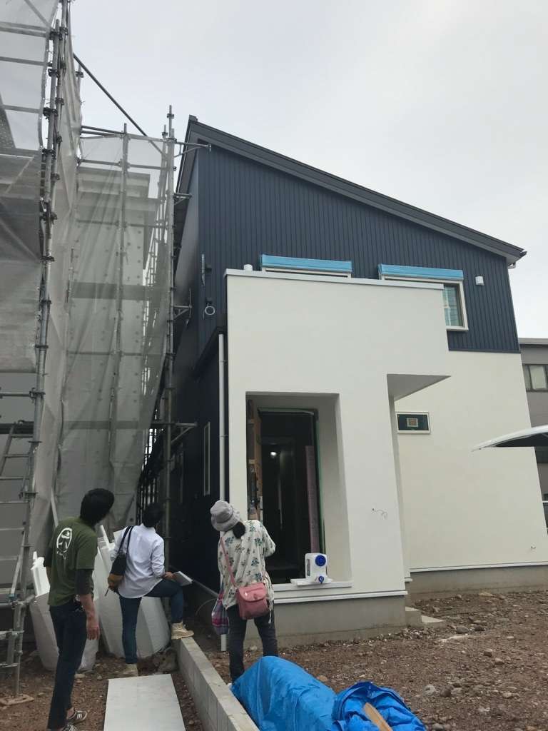足場が取れたので、M様と外構の打ち合わせを現地で行いました^^