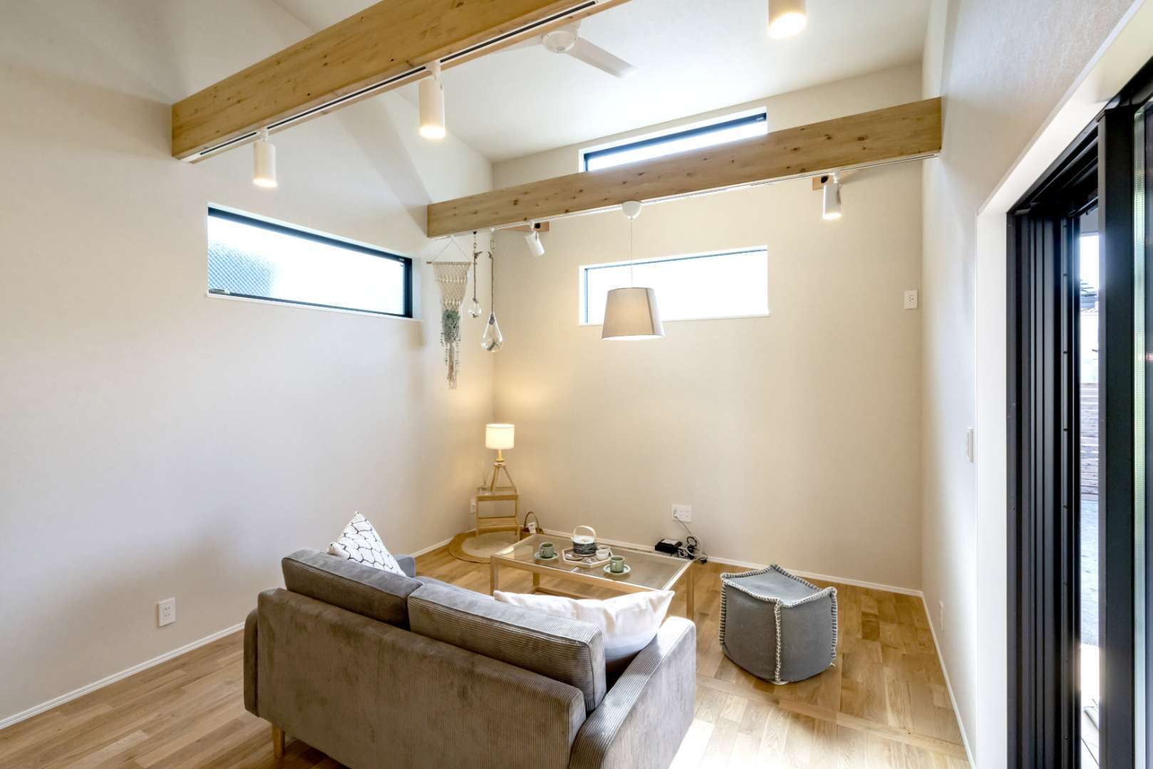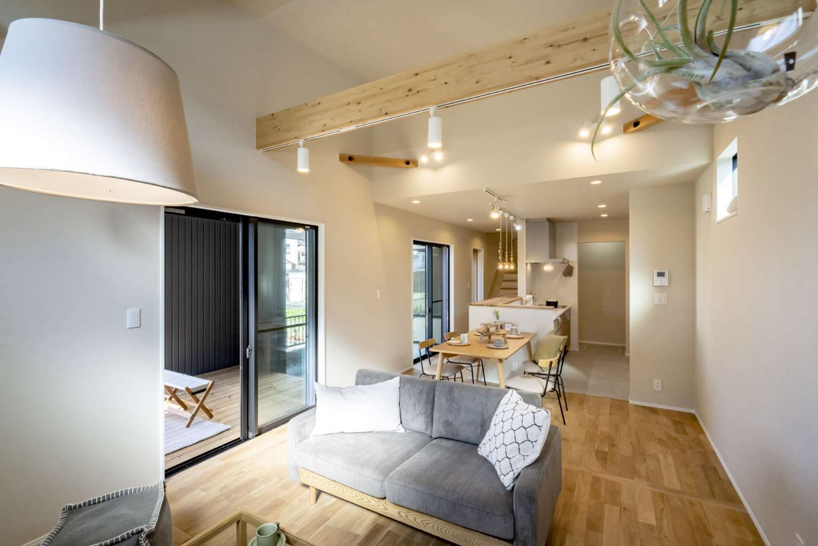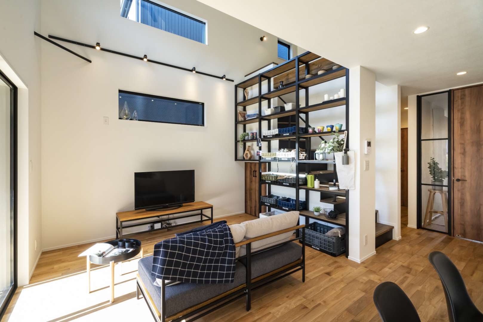 勾配天井の吹抜けでゆったりとした時間を過ごせます。