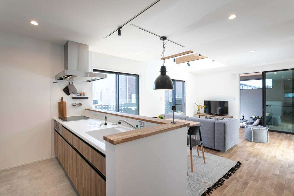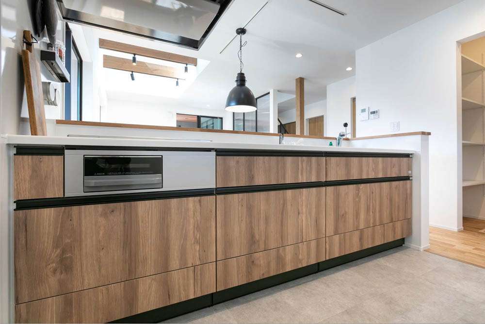 コンロ前の壁をなくすことで、より明るく開放感のあるキッチンに。